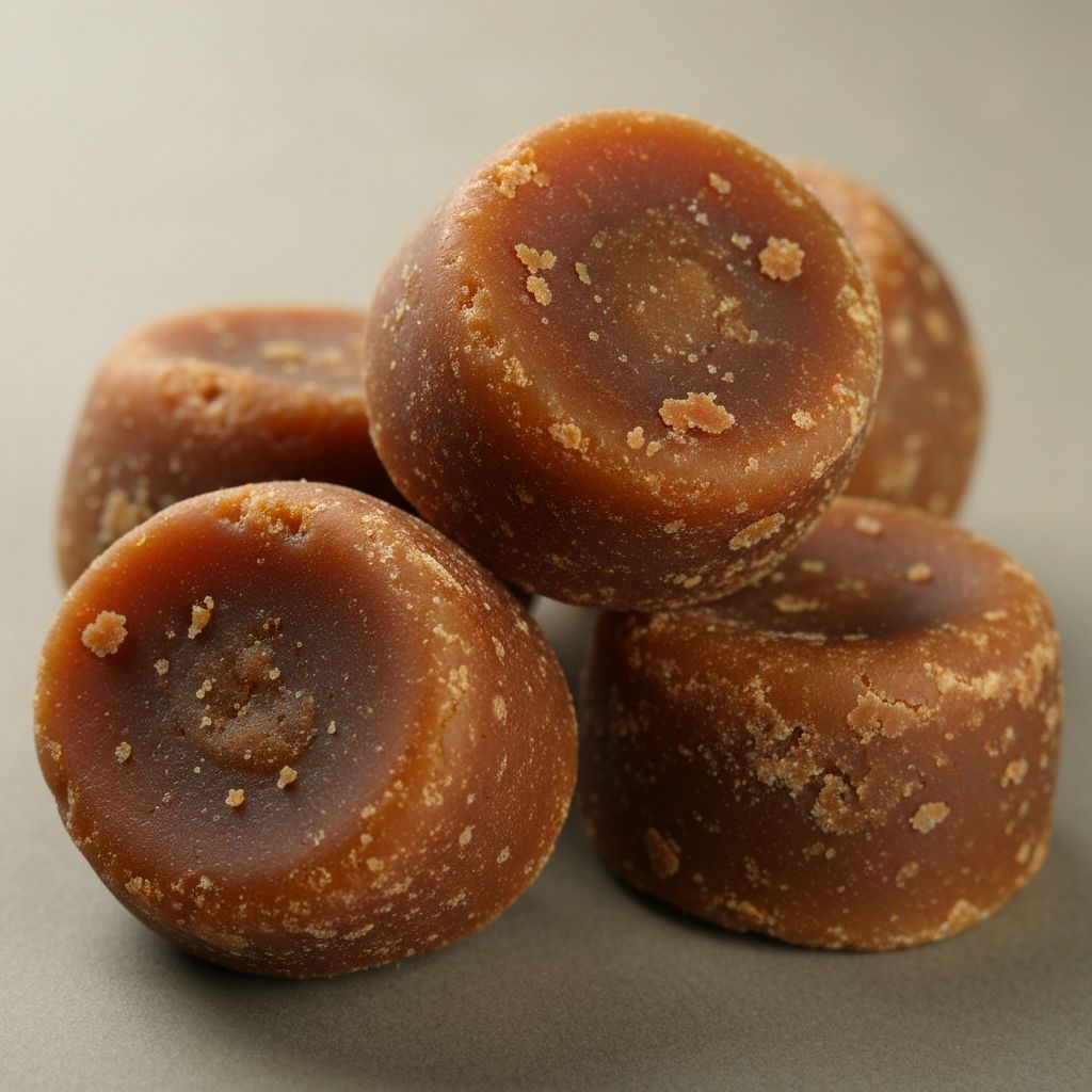 Traditional unrefined jaggery prepared without chemicals, preserving minerals and natural sweetness.