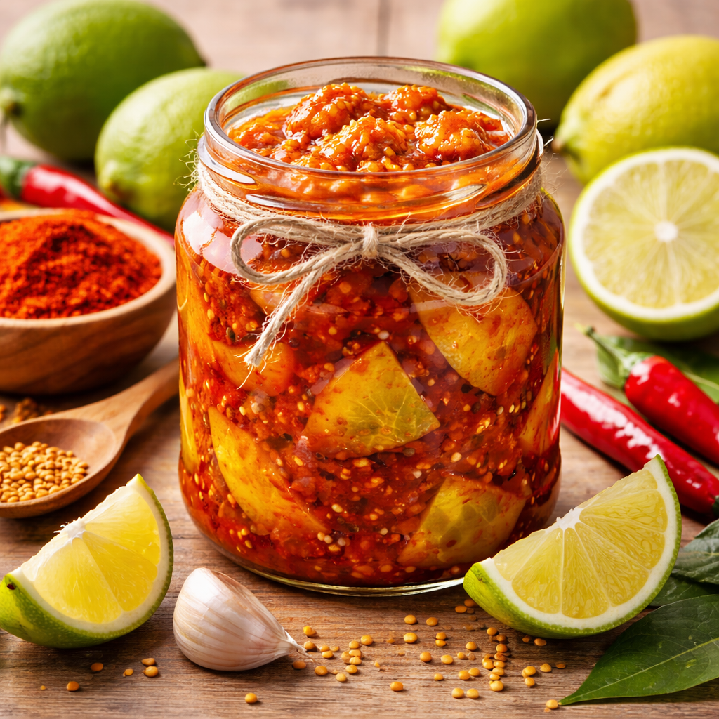 Traditional lime pickle prepared using time-tested recipes and natural ingredients.